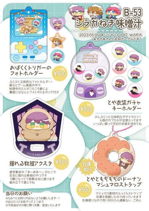 🍣通販の設営完了しました🍣 #にじそうさく07 で頒布したグッズの通販はじめました! booth手数料の関係で会場価格+100です すみません… 5月21日まで受け付け中&売り切れナシです よければ覗きに来てね よろしくお願いします~! shiragasugoi.booth.pm