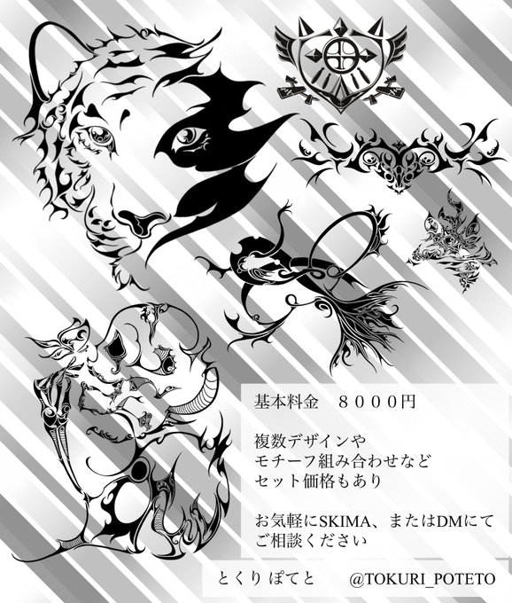 1 1 模様テイストのデザインです。 エンブレム、ロゴ、タトゥー、背景、名刺、ステッカーなど… ご依頼お待ちしております。 #SKIMA #コミッション #ステッカー #Vtuber素材 #Vtuber #イラスト #タトゥー #ロゴ #デザイン #模様 #依頼受付中 #有償依頼募集中 23/02/13 10:53