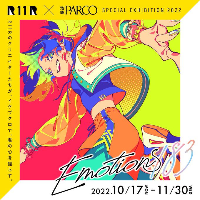 R11R×池袋PARCO SPECIAL EXHIBITION ”Emotions183” に参加させていただきました! 池袋PARCO内にイラストが広告として掲出されるほか、複製原画販売もあります!お楽しみに⚡️⚡️⚡️ 特設サイト👇 ikebukuro.parco.jp/page/R11R_PARC… #Emotions183