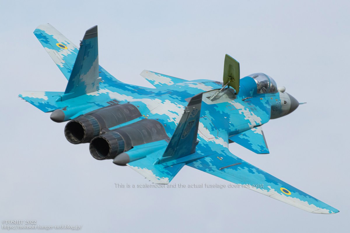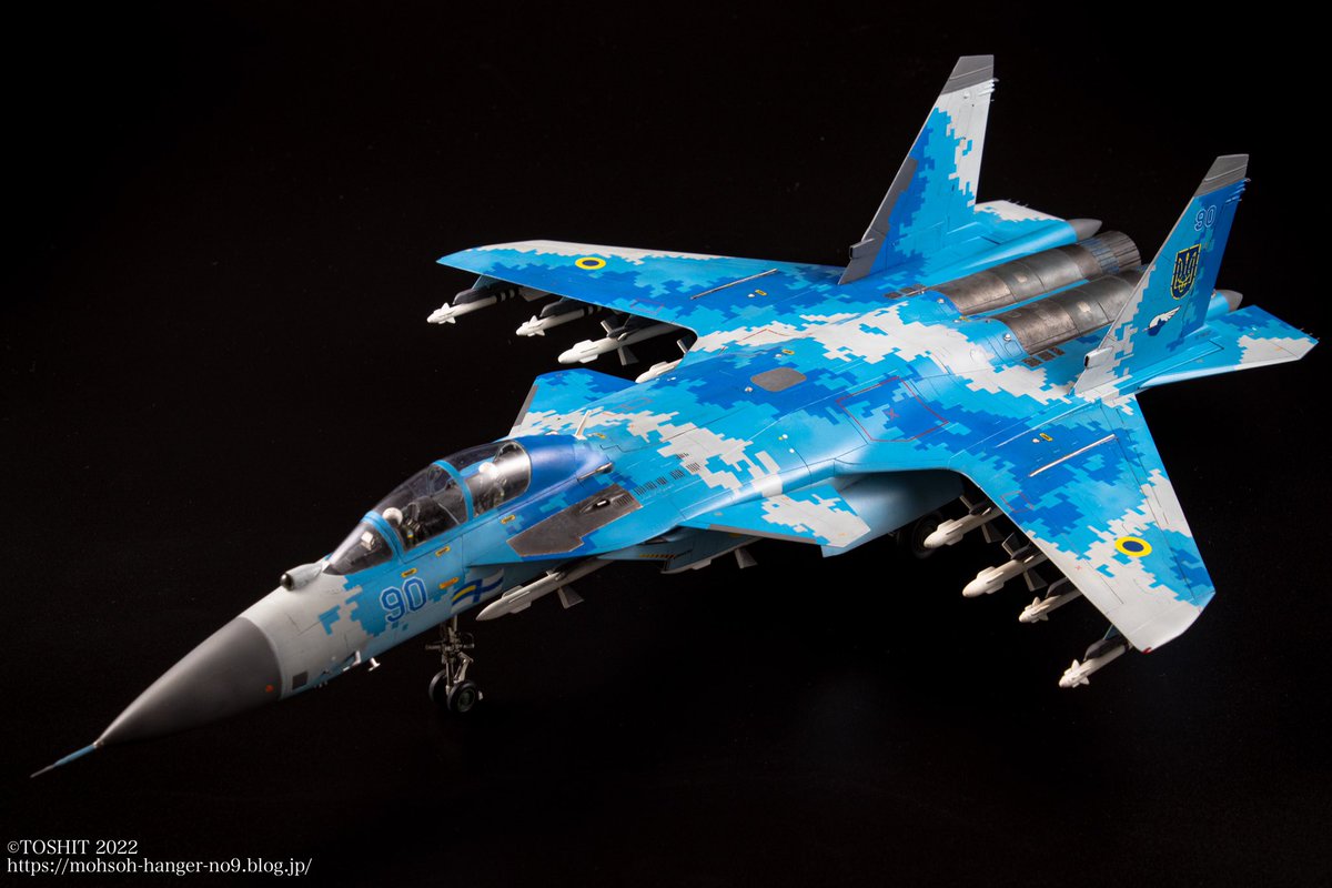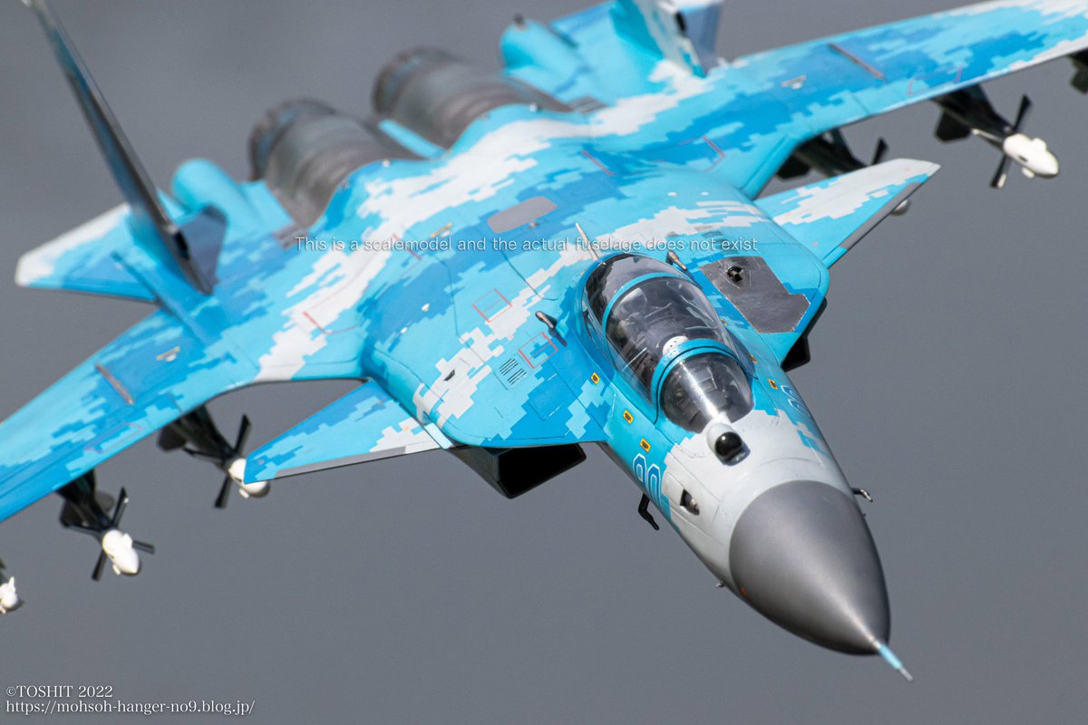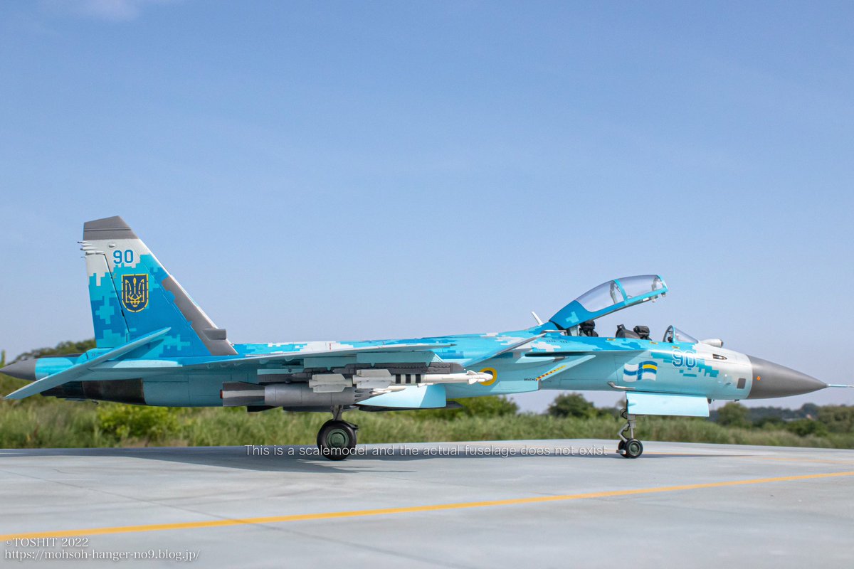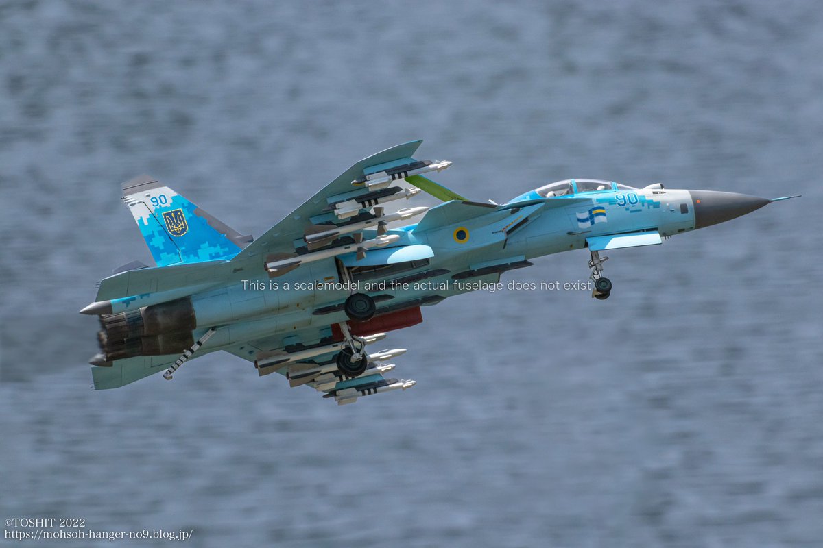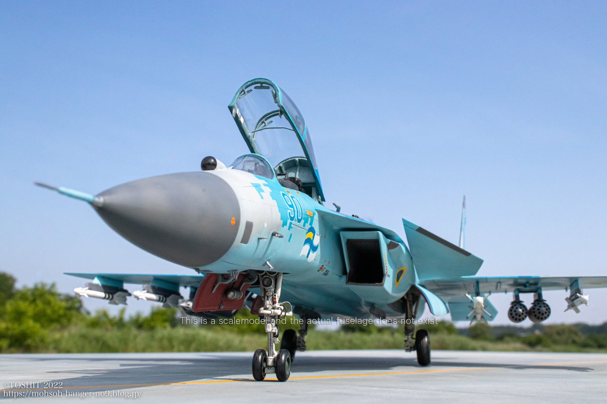 まぁ湿っぽい話は置いといて。 元キットは1/72のハセガワ(ズベズダOEM)で、パネルラインはフランカーを参考にでっち上げ。 Su-33やらF-15やらの部品を流用して随所形状を変えてます。 複座化によりキャノピーはバキュームで製作。 そのあたり詳しくはブログにて! mohsoh-hanger-no9.blog.jp/archives/52476…