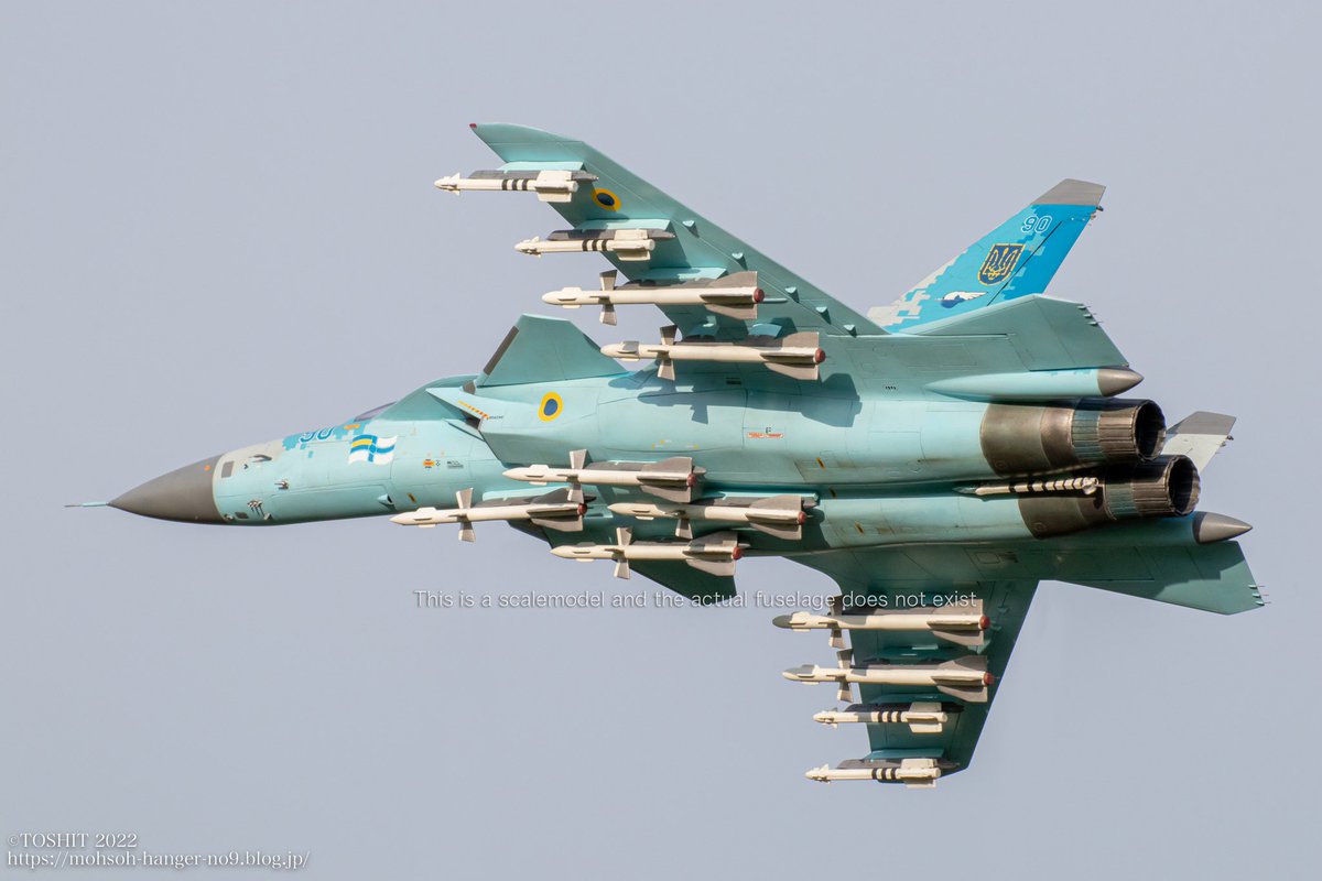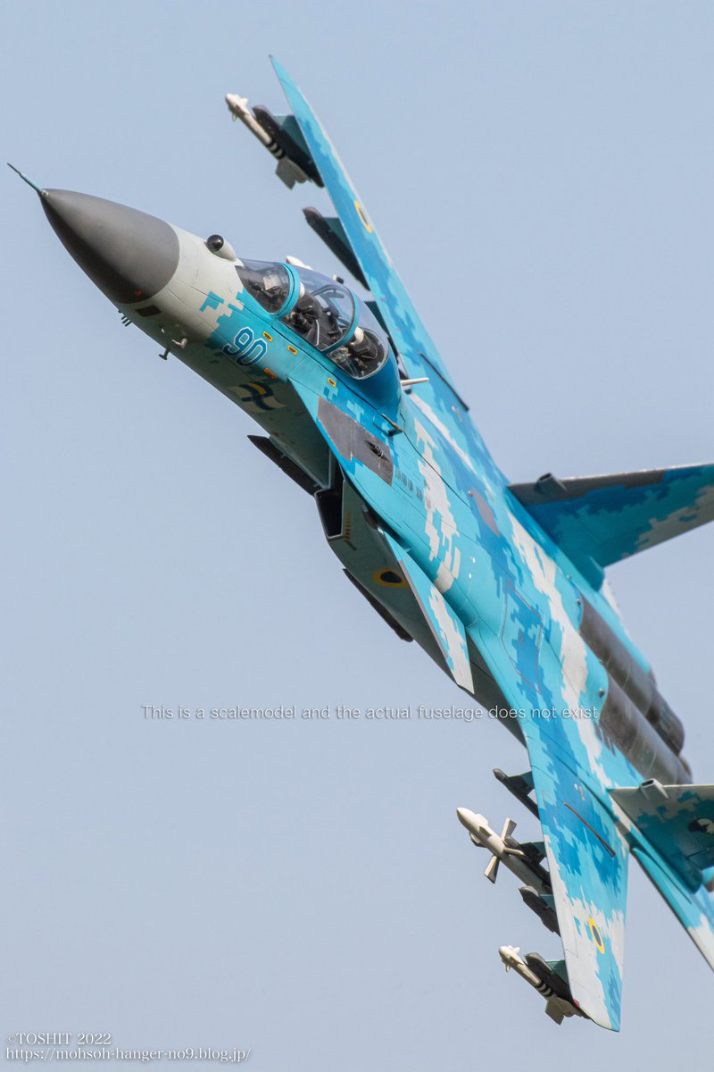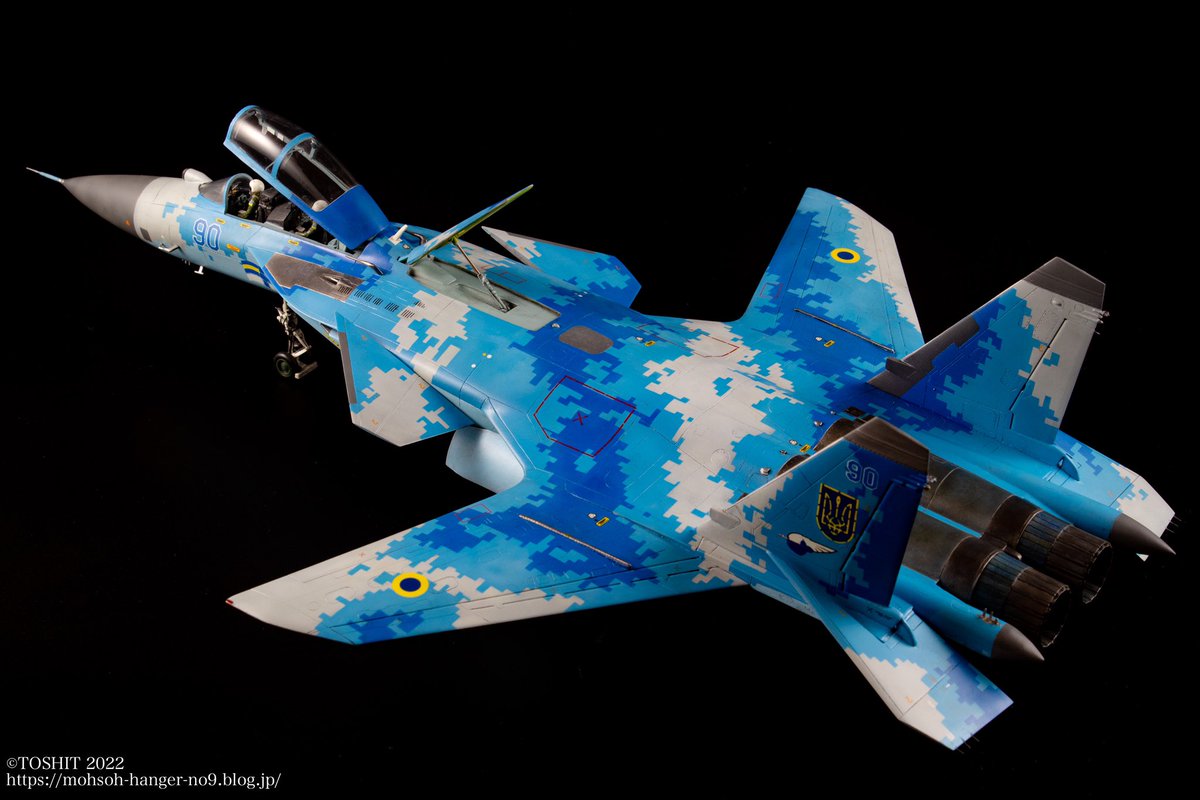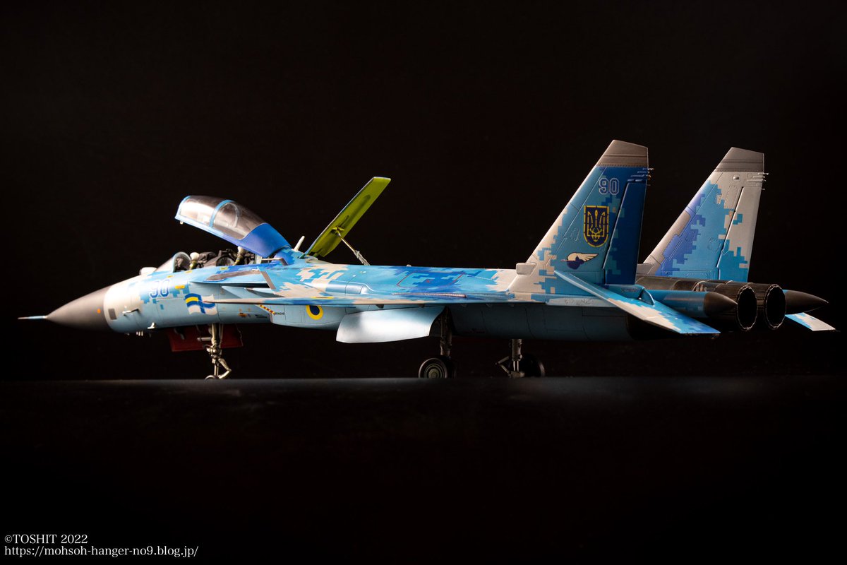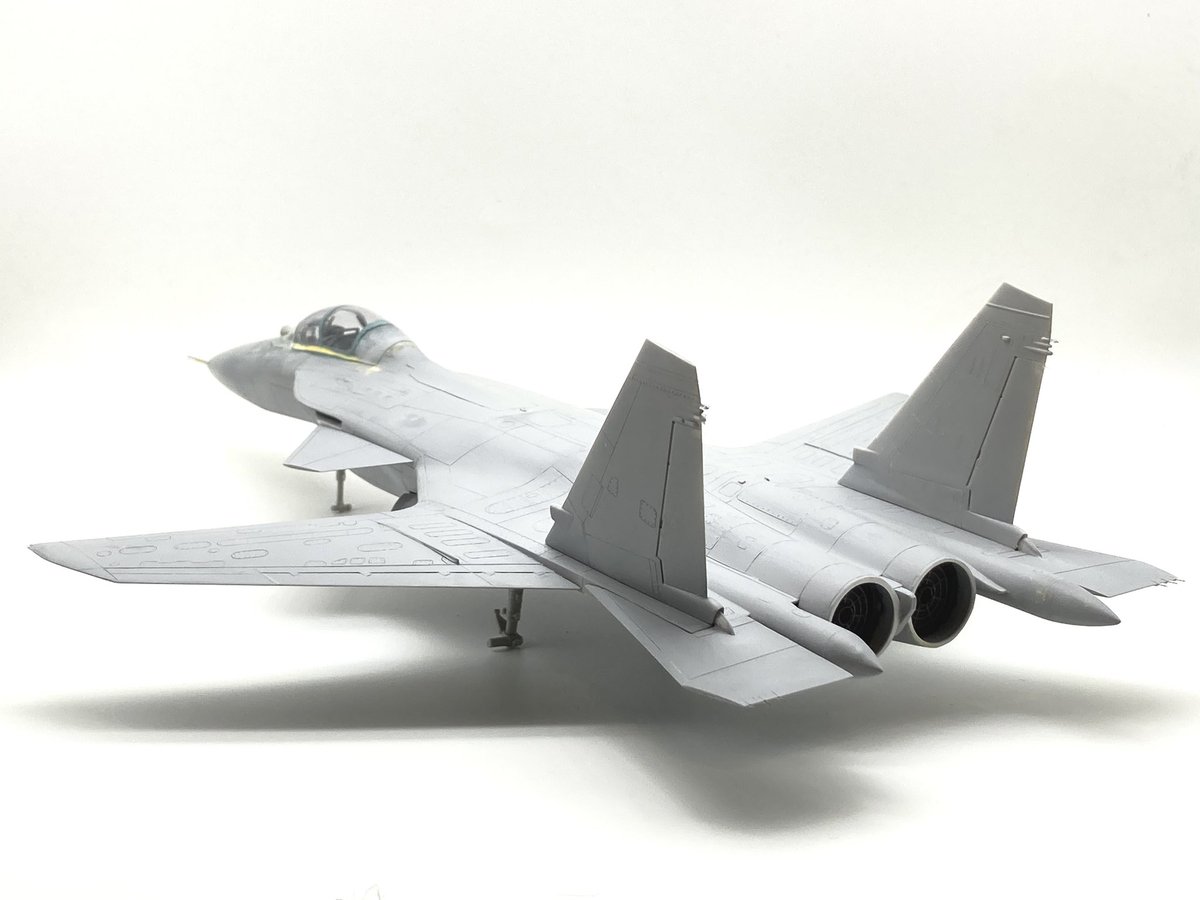 まぁ湿っぽい話は置いといて。 元キットは1/72のハセガワ(ズベズダOEM)で、パネルラインはフランカーを参考にでっち上げ。 Su-33やらF-15やらの部品を流用して随所形状を変えてます。 複座化によりキャノピーはバキュームで製作。 そのあたり詳しくはブログにて! mohsoh-hanger-no9.blog.jp/archives/52476…