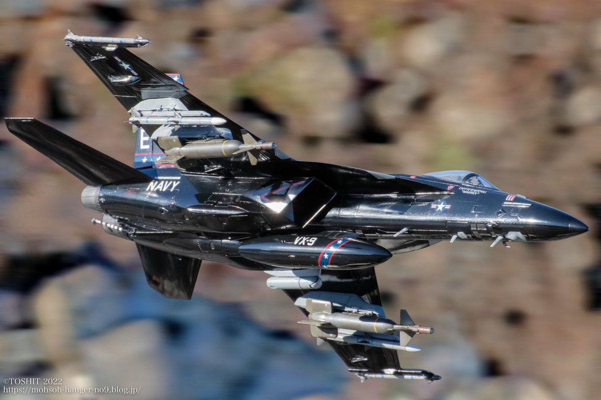 まるで”あの”シーンよろしくGBU抱えてデスバレーをカッ飛んでいくマーヴェリックさん。 劇中、高速で渓谷を抜けていけるのもVX-9時代に訓練しまくったからなんですなぁ(勝手に設定を作って納得するな) #TopGunMaverick