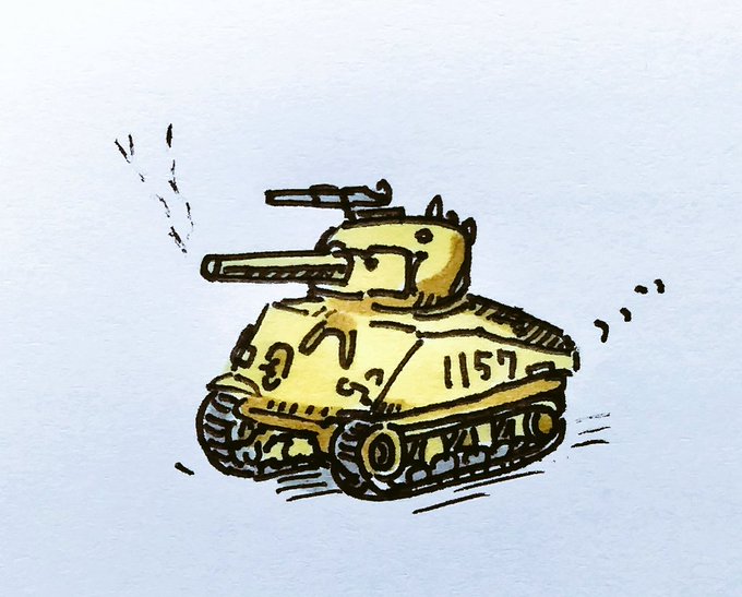3 13 タンク ーーーーー シャーマン戦車M4A3をモチーフにしたやつ 前の傾斜した装甲がゲームだとつよい! ーーーーー #過去作 #イラスト 22/12/02 18:52