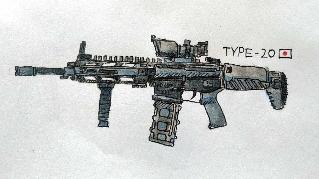 20mmレールのやつに米陸軍とかの二脚つきフォアグリップをつけたぃ… #イラスト #過去絵