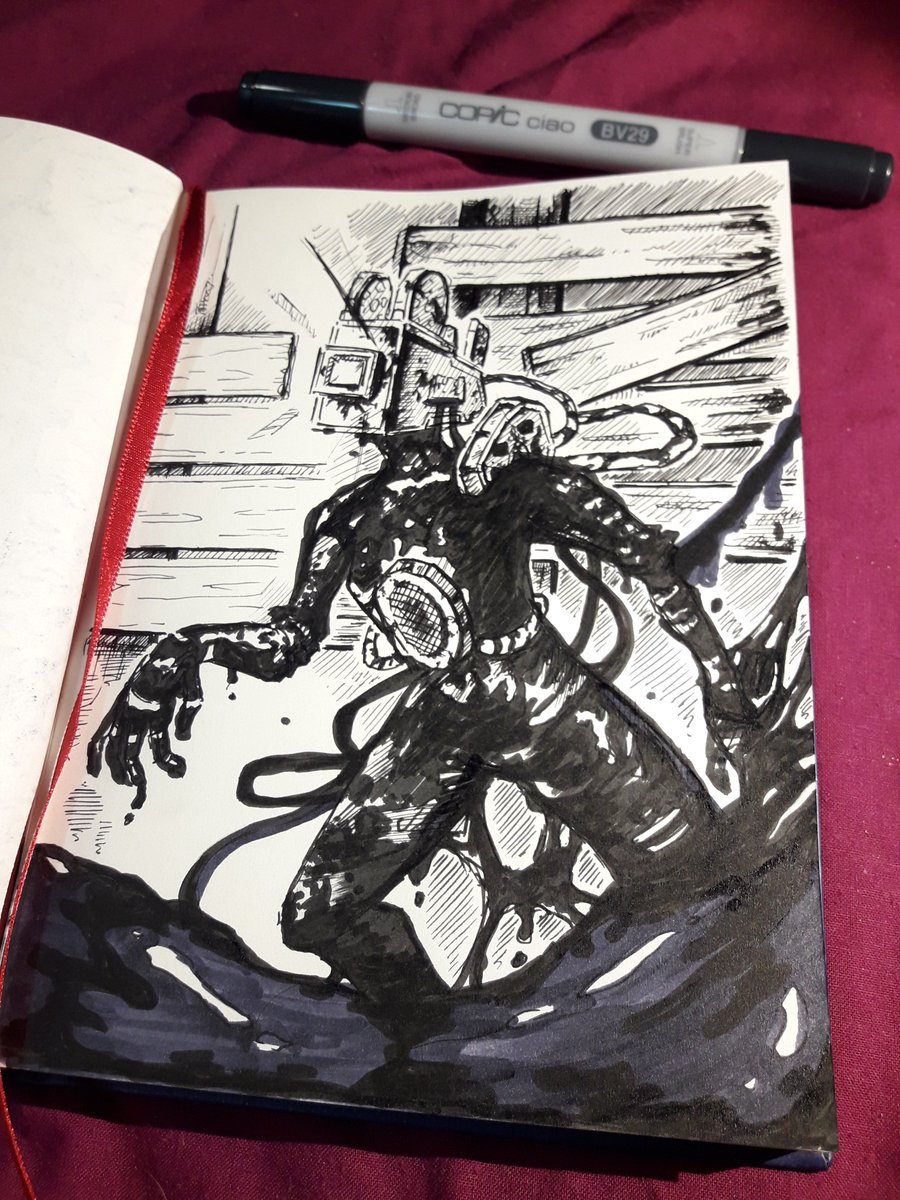 "The projectionist"! Day-03: Saw #BATIM chapter3 and loved the design~ #Inktober #INKTOBER17 #inktober2017 #bendy @themeatly #CopicMarker