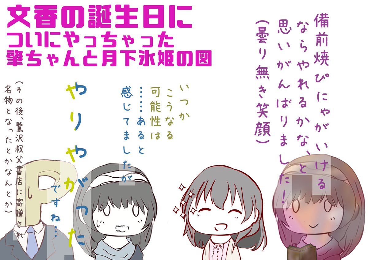 月下氷姫担当なので肇ちゃんと文香を祝わうよ! うん、備前焼ぴにゃが作られたのでね、うちPの肇ちゃんならやるわよ きっと100年後くらいに重要文化財「読書する偶像」になる。たぶん。きっと。 #鷺沢文香誕生祭2022 #鷺沢文香生誕祭2022