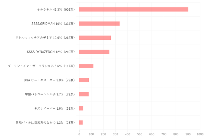Final result of the Studio TRIGGER anime (TV series) popularity vote twitter.com/TRIGGER_suppor…
