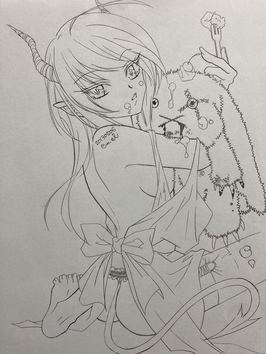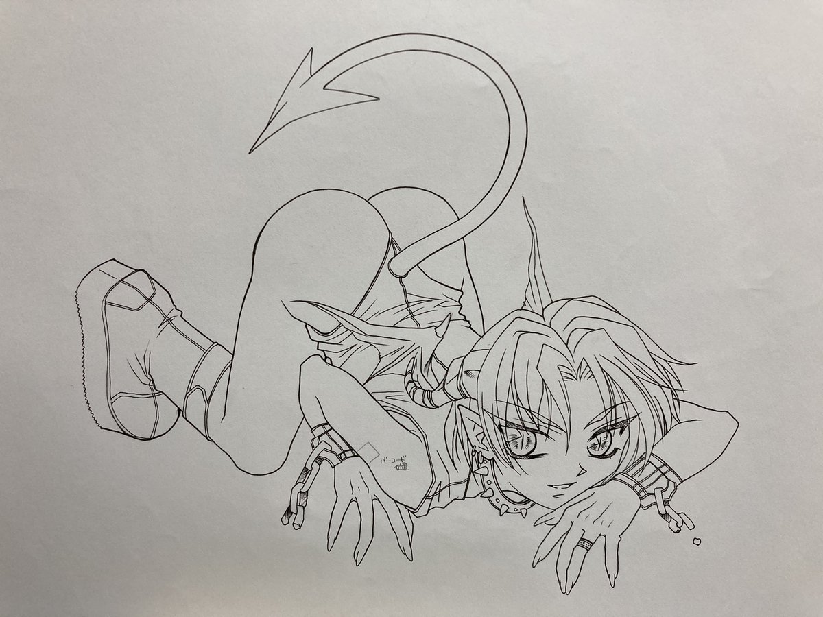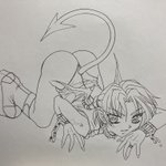 これは自分のホームページ用に描いた悪魔で名前は無いの。着色したデータは小さいのが残っていたので、その当時塗った画像も一応載せますね、でもあんまり気に入った色に塗れなかったのが心残りだなぁ…(;´-ω-) #創作 #オリキャラ #イラスト #illustration #絵描きさんと繋がりたい