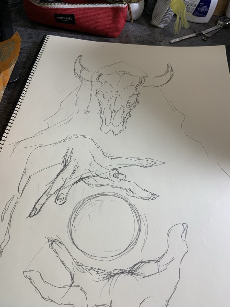 5 9 牛骨の占い師(この絵のタイトル)が出来上がるまで #ペン画 21/11/14 12:24