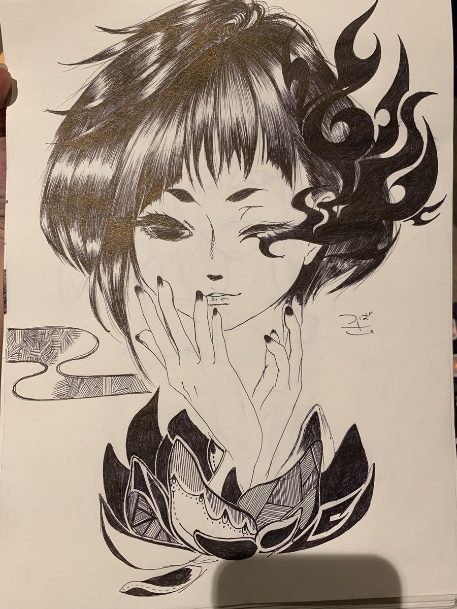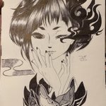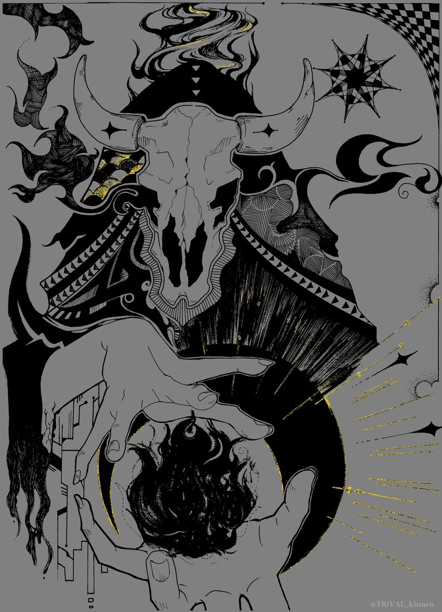 牛骨の占い師(この絵のタイトル)が出来上がるまで #ペン画