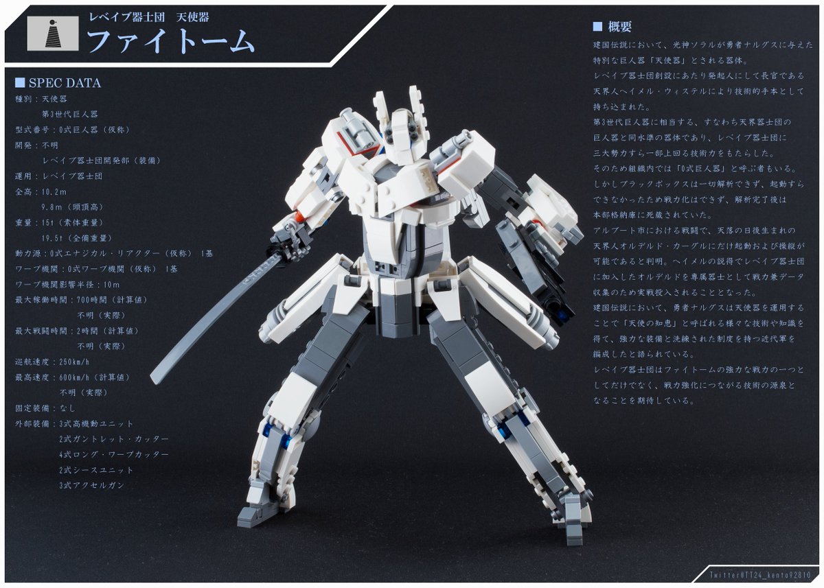 26 101 「巨人器リオベリス」 オリジナルの新作レゴロボです! 制作期間は11/14~11/26のおよそ2週間 縮尺1/40で全高22.5cm、フィグ乗りの作品です 155mm狙撃砲をメインウェポンに、2丁の57mm拳銃や豊富な装備、そして305mm狙撃砲を使用します (1/4) #LEGO #レゴロボ 21/11/29 20:09