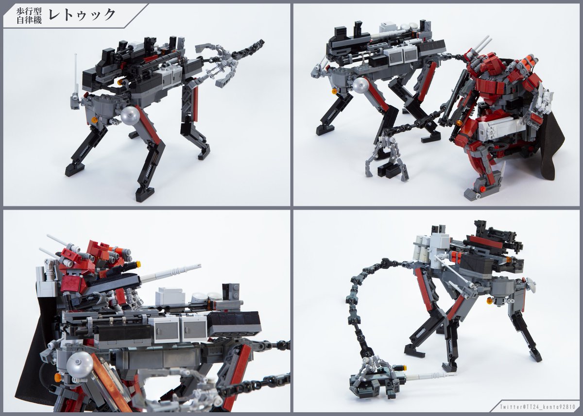 13 80 「歩行型自律機レトゥック」 新作レゴロボです! 装備や物資を運搬するための四足歩行の自律機(ロボット)で、尻尾のようなテール・アームを使い自力で積み下ろしができます 制作期間は2/15~2/20でした 縮尺1/40、テール・アームを含めて全長54.5cmの作品です (1/2) #LEGO #レゴロボ 22/02/24 20:31