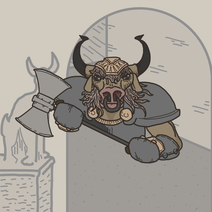 #inktober2022 Day 9 Blackhorn the 'Iron' Minotaur; Likes: His Lair and his Cult. Dislikes: Adventures after his armor... Wears +1 Plate armor #inktober2022day9 #dungeonsanddragonsart #ttrpg #characterart #digitalart #monster #Warrior #dungeonsanddragons