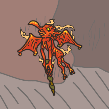#inktober2022 Day 17 Iggy the Magma Mephit; Likes: A nice lump of Coal Dislikes: Autumn Weather Has been entrusted with a Wand of Webs #ttrpg #digitalart #characterart #dungeonsanddragons He's just doing his best after being transefered to the material plane. Hang in there.
