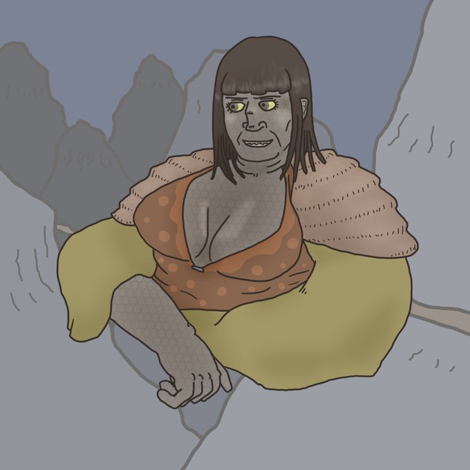 #inktober2022 Day 22 Stroddes the Stone Giant; Likes: Polite travellers who pay in livestock. Dislikes: Leaving her valley. Keeps a Javelin of Lightning on her, just in case. #ttrpg #giantess #dungeonsanddragons It'll cost the party a cow and she'll carry them across the way.