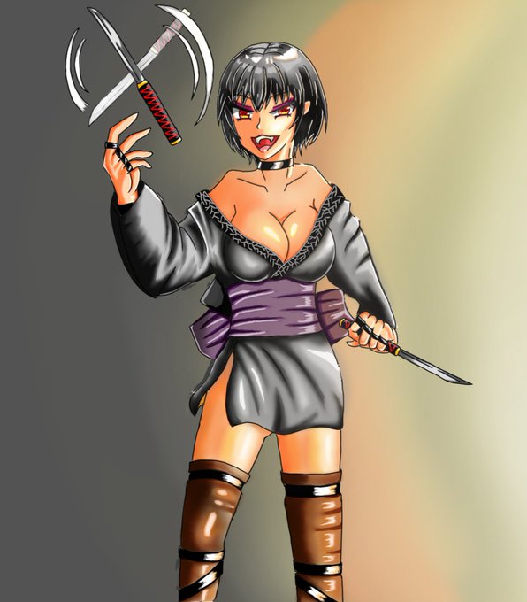天誅 黒屋 上くノ一 ある方に指導を受けまして、右のように修正しました。右が最新です。雰囲気がガラリとかわりましたね。指導についていくだけで、私は精一杯です…。 #絵描きさんと繋がりたい #イラスト