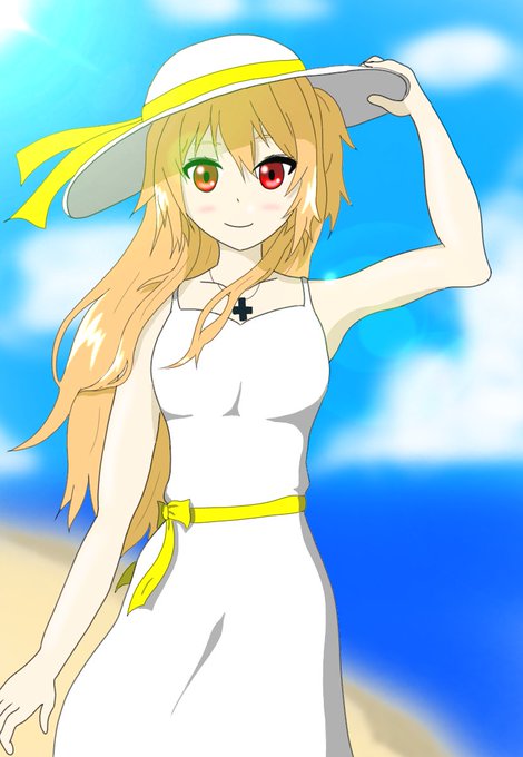 白ワンピとか着てもらって夏っぽい格好になってもらった あと今回は背景に力入れてみた #夢咲美術展 #夢咲楓