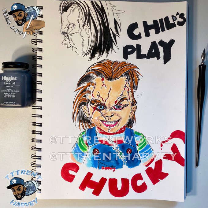 โ Childโs Play โ ๐ช #Chucky #Throwback Artwork This A.M. Fam. I Had FUN This #Inktober2019 & This Is 1 Of The Pieces I Designed For It! One Of My Favs. Oh & Itโs #STREAMSATURDAY Too! ๐ฎ๐ฎ ๐ ๐ผ๐ฟ๐ฒ ๐๐ฟ๐๐ผ ๐๐ฒ๐ฎ๐๐๐น & ๐๐ฑ๐ถ๐๐๐ ๐๐ผ ๐ฐ๐ผ๐บ๐ฒ!โฃ #Inktober2019 #blackartists