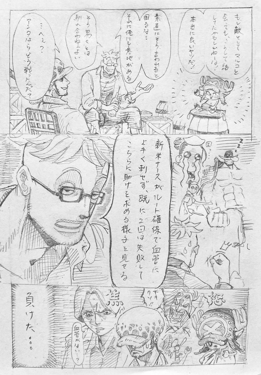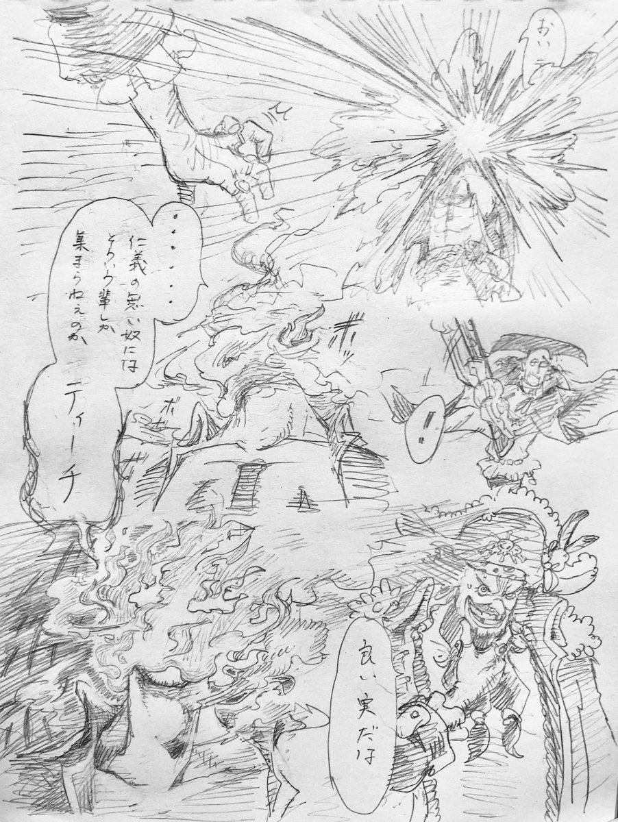 84 826 青炎雁ってこういう攻撃か?という妄想漫画。昔にビッグマム🏴☠️と🐳🏴☠️は度々ぶつかっていたりして、という妄想も含まれています。 23/06/27 02:09