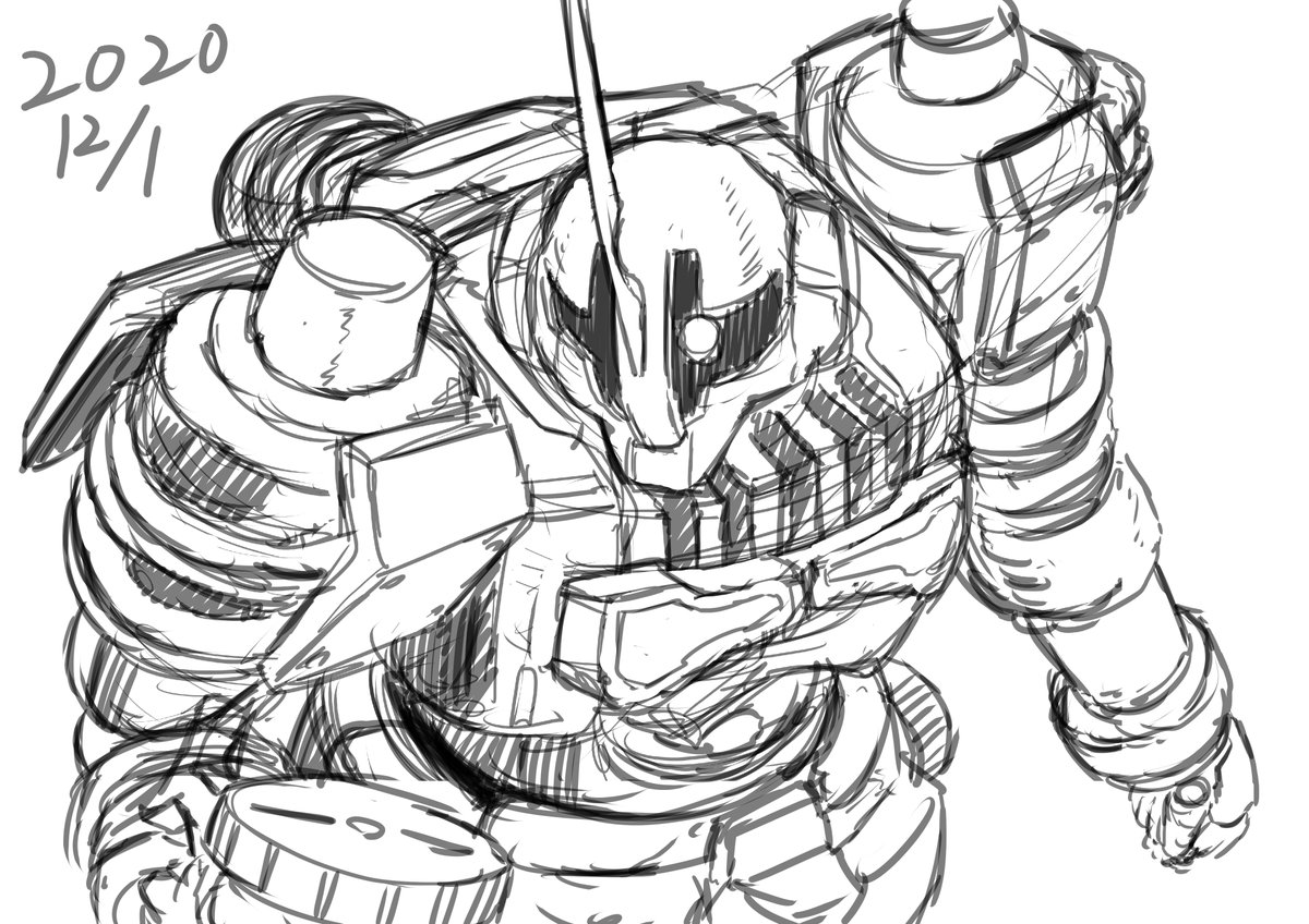 7 14 配信のご視聴あざっした。拙いトークでしたがお付き合いいただいた方々に感謝。自画像を描こうと思っていたけどぜんぜん筆が乗らなくてモビルスーツを描きました 20/12/01 01:04
