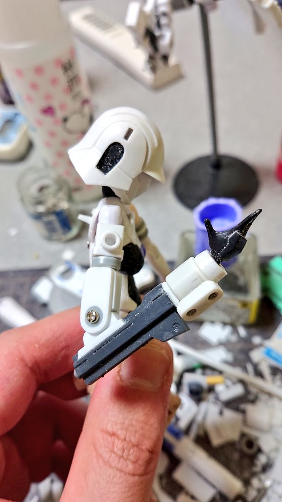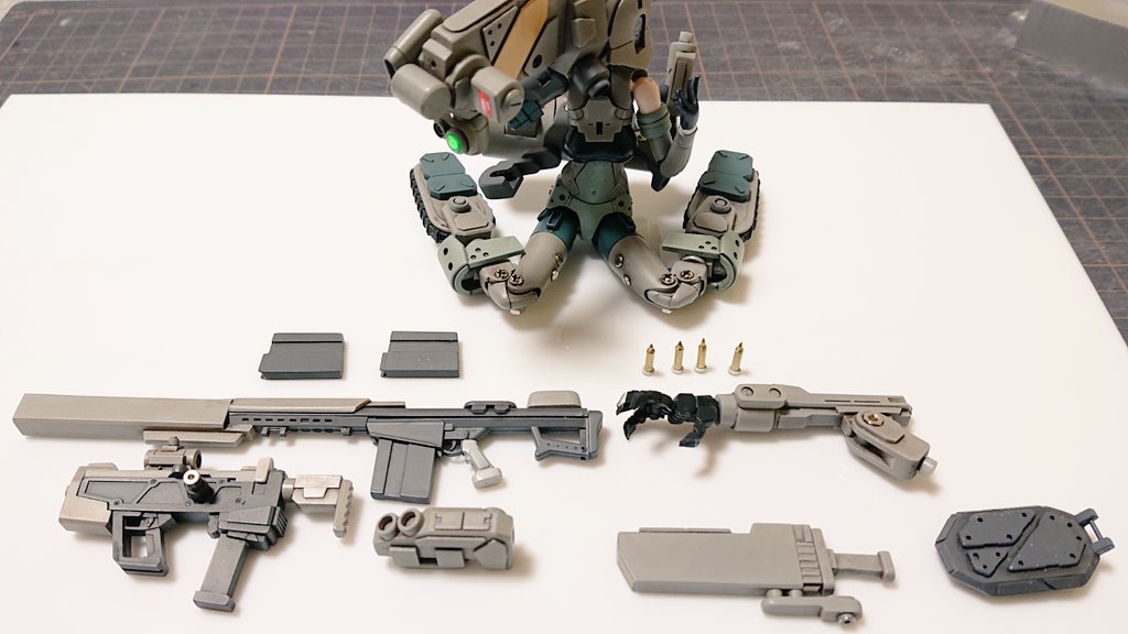 1 4 モデラーズアンサンブル用のカスタムスナイプ、右腕が溶剤の侵食で破断したので、パーツ流用しつつ武装義肢っぽく新規作成。二瓶作品風になってた。 #メガミデバイス 19/02/07 02:41