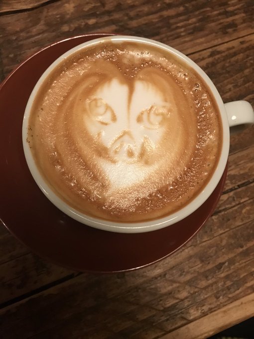 いのすけかいたった! この間、某カフェでホットラテを頼んだとき、なんか描けそうって思ってフォークで描いてみた! 満足^ ^ #気滅の刃 #伊之助 #気滅の刃無限列車編 #鬼滅の刃好きと繋がりたい #鬼滅の刃イラスト #鬼滅の刃で学ぶ育児