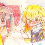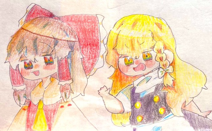ラクガキの霊夢と魔理沙で色塗り勉強中✍💦 #博麗霊夢 #霧雨魔理沙 #色鉛筆 #ラクガキ