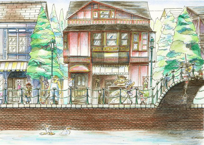 川沿いの風景 #オリジナル #色鉛筆 #街並み #風景 pixiv.net/artworks/10001…