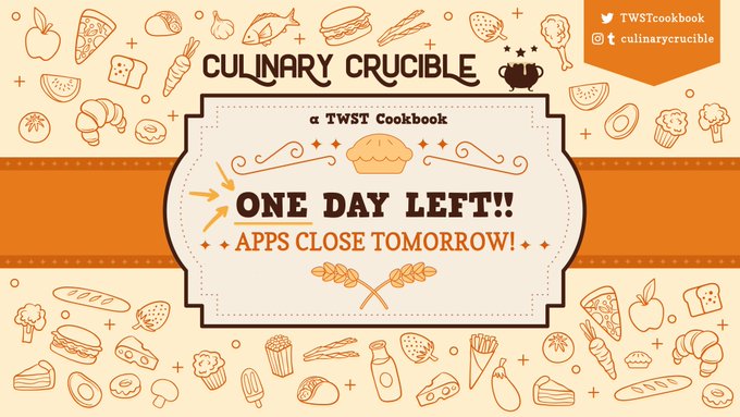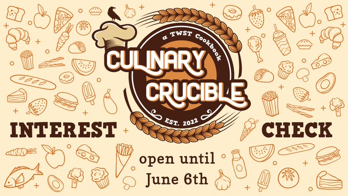🖋️ Eyes to the front of the classroom, please! The interest check for Culinary Crucible: a TWST Cookbook is now open! Tell us your thoughts & let us know what you'd like to see from us! → May 23 - June 6 → forms.gle/YxrgS9ssKNwhfq… #twistedwonderland #twstファンアート #twst