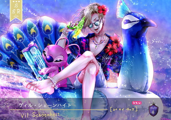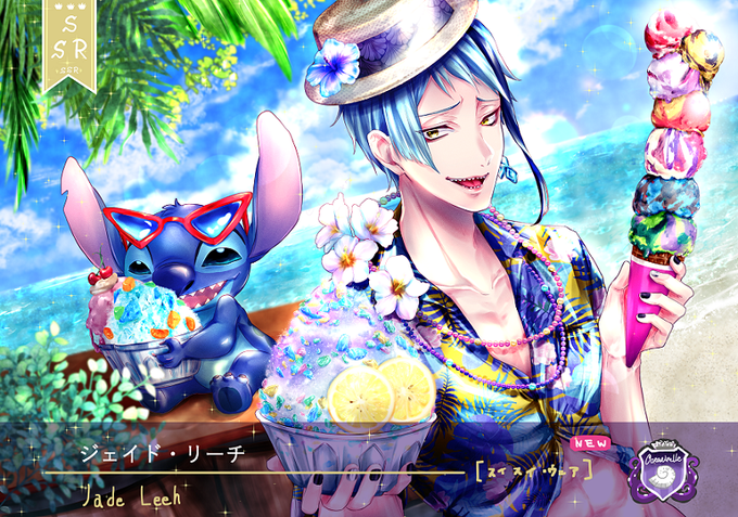 オクタの中で🐬だけお留守番だとぉ?!?! …いや、そんなはずはない。 スティッチと美味しいものいっぱい食べる夏になるんだぁ!!!!!🍧🍨 ほら、一足早くスイスイ・ウェア🐬SSRご降臨されましたぁーーーーー!!!!!!( ゚Д゚)🌺☀← (※完全幻覚) #twstファンアート #ツイステファンアート