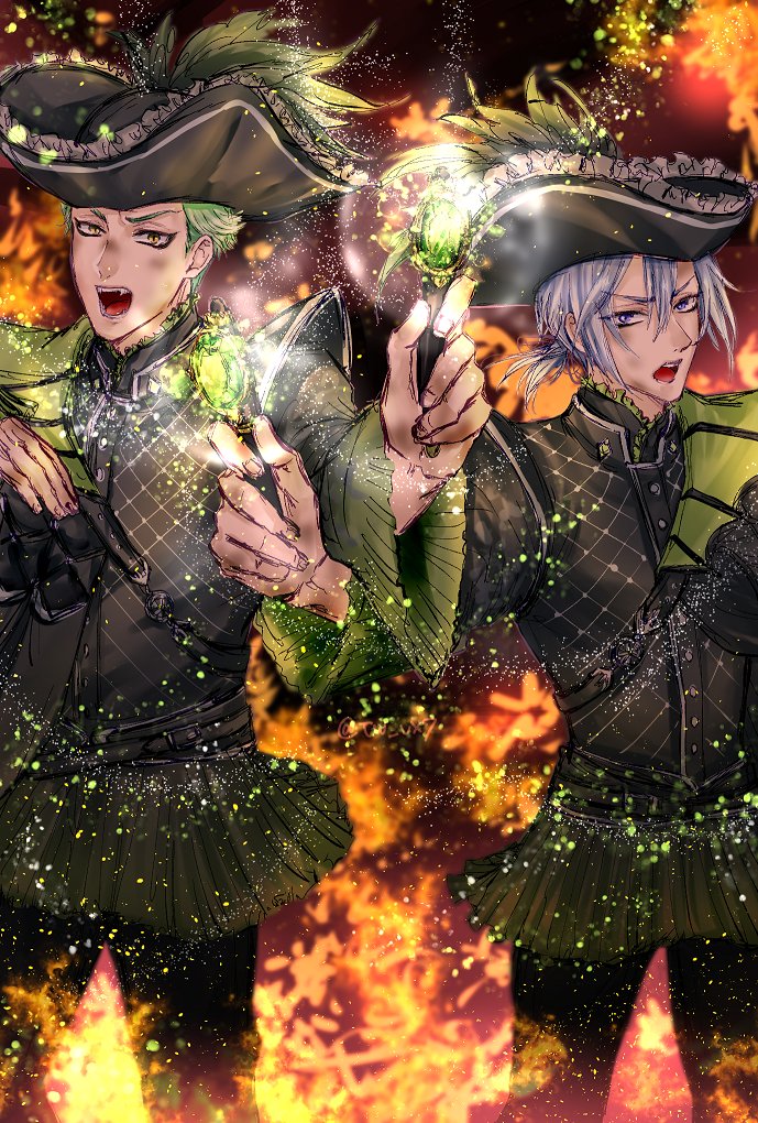あけましておめでとうございますー!🎍✨🐰← 新春⚡&👑様!! 新年早々素敵な推しを拝めた最高イベでしたぁ…! (…やっと描きあげたので次はちょっと百獣の🦁おじたんを描きたいんだぁ…_( _´ω`)_ペショ←) #ツイステファンアート #twstファンアート
