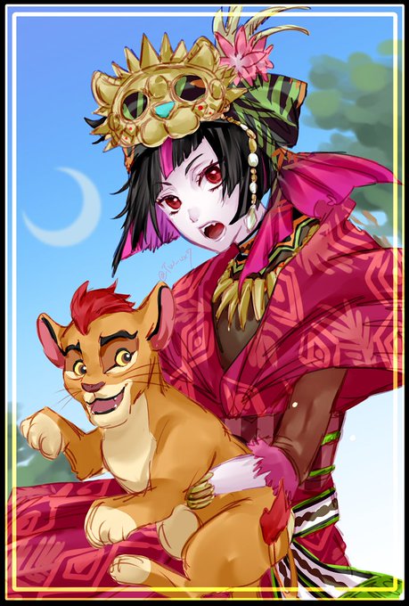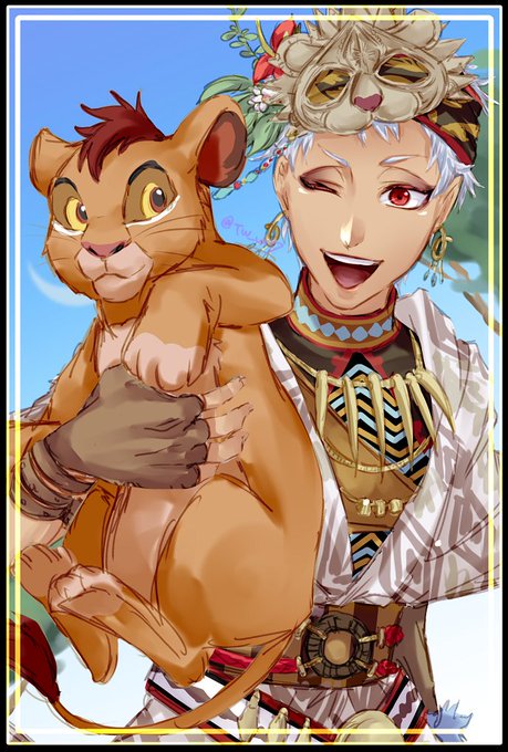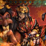 百獣の装束の🦁 (※落書きシリーズでは 👑&ナラ、☀&コパ、🦇&カイオン描いたので おじたんはやっぱりスカー、シンバと共にぃ…!!←) #twstファンアート #ツイステファンアート