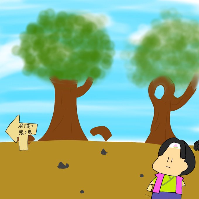 今日は鬼ヶ島に来るまで全然仲間が着いてこなかった孤独な桃太郎を描きました #桃太郎 #イラスト初心者 #デジタルイラスト