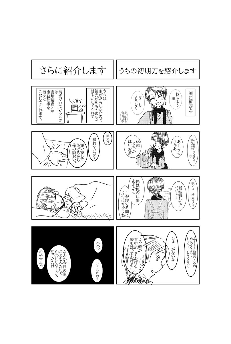 1 4 清さにマンガ描きました(※審神者セリフだけ登場注意) うちの加州清光です。自本丸設定しかありません。 21/11/16 14:34