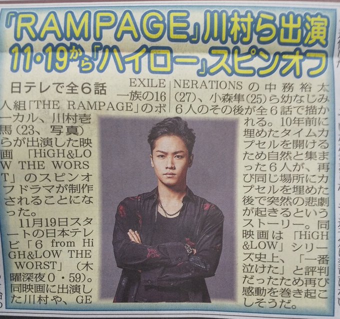 今回もバッチリと脚本を作らせてもらいました。幼馴染み6人の熱い青春ドラマに仕上がってると思います。よろしくどうぞ〜〜。 #ハイローザワーストドラマ #therampage #川村壱馬 #日テレ