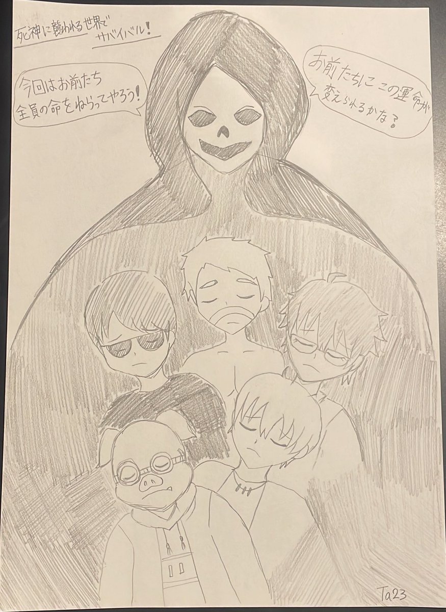 久しぶりのアナログ絵。 色は塗らず鉛筆のみで 死神ええ声過ぎるんですけど🤣 動画も面白かったです(*´˘`*)♡ #ドズル社アート #ドズってる #ぼんさん何してんすか #はよ見ろやあ #見るかもわからん #誰でも見れますねぇ #今回のネコおじ