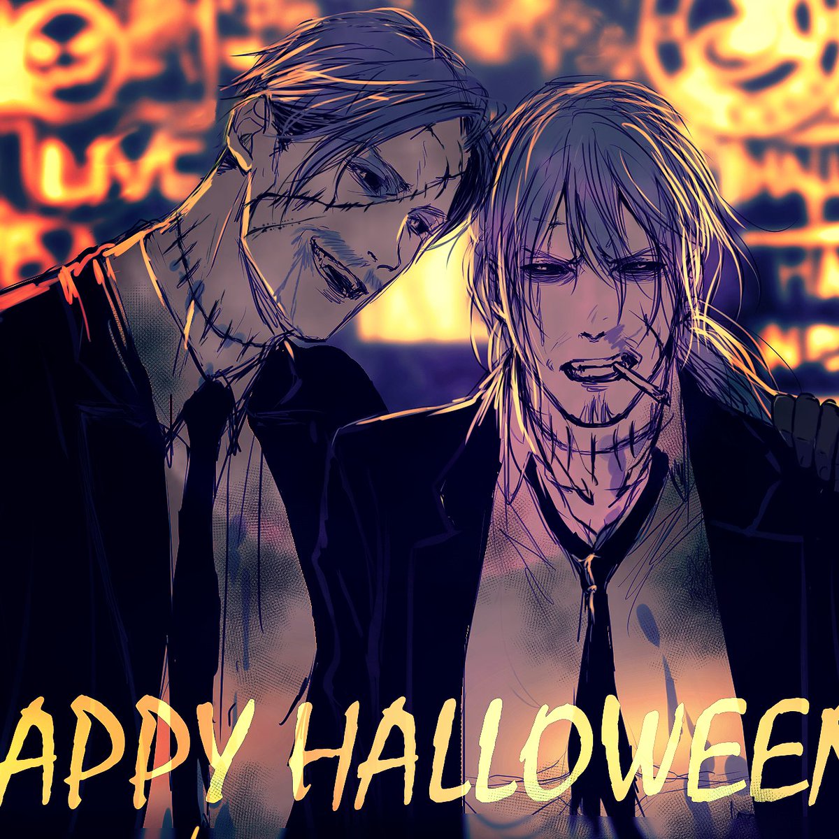 #歴代ハロウィン絵を上げよう 過去絵で🎃描いた気になる。 ゾンビ仮装のロドニーとバッカス👻
