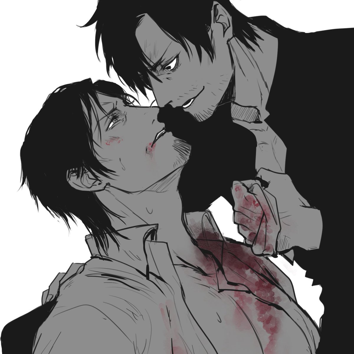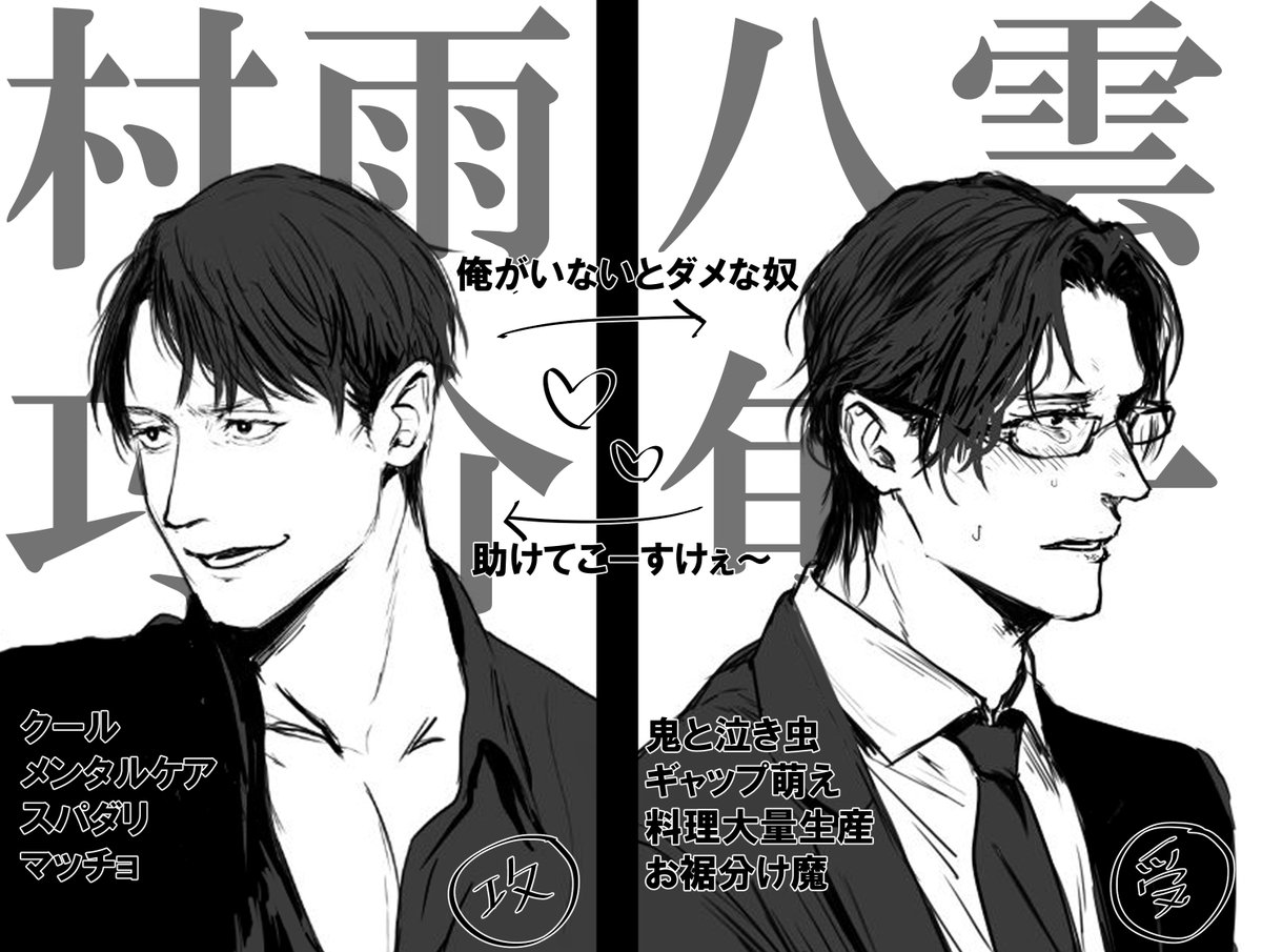 #自創作男子イラストフェス01 過去絵ですが、参加させていただきます。 黒髪のお兄さんとおじさんが好きです。