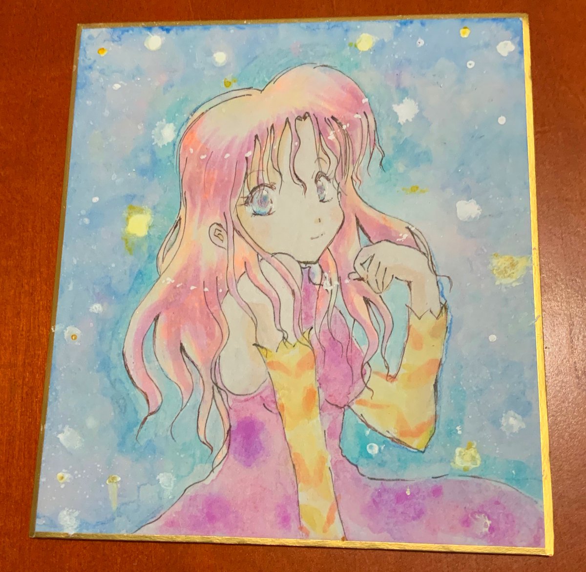 #透明水彩 #オリジナルイラスト #コピック 水彩が塗れる1/4サイズの色紙に錯誤した オリジナル子ちゃん