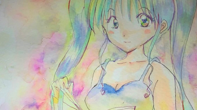 5 16 #ラムちゃん #透明水彩 #アナログイラスト #うる星やつら 丸ペン主線 水彩ラムちゃん 23/05/19 19:47