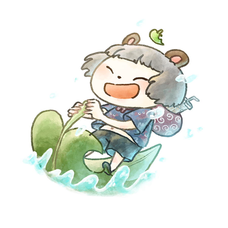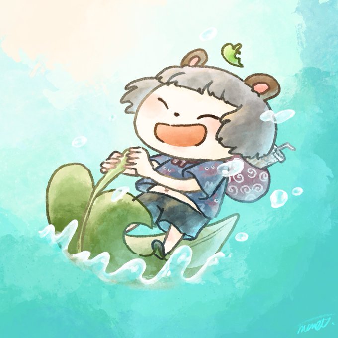 はっぱに乗るぽんぽこ🍃 #ぽこあーと #ぽんぽこはやおき