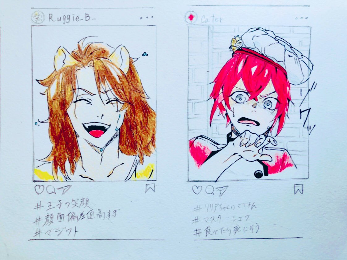 0 4 2つとも塗り終わった〜 #ラギーのマジカメ #レオナおじたん #レオナ #レオナキングスカラー #ツイステ #ツイステイラスト #ツイステットワンダーランド #ツイステファンアート #リドル #リドルローズハート #ケイトのマジカメ 21/08/19 11:57