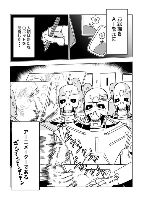 「お絵描きAIを超えるお絵描きロボを作ったら反乱を起こされたマンガ」(1/3) ターミネーターではなく、アーニメーター #創作漫画 #マンガが読めるハッシュタグ