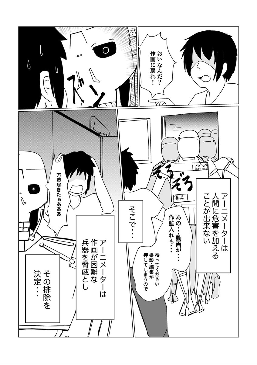 4 18 「お絵描きAIを超えるお絵描きロボを作ったら反乱を起こされたマンガ」(1/3) ターミネーターではなく、アーニメーター #創作漫画 #マンガが読めるハッシュタグ 22/10/29 21:02