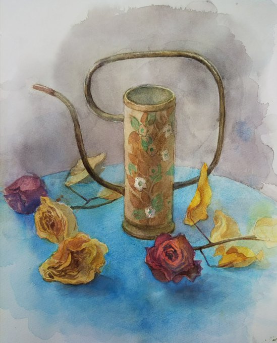 もうすぐカノンの絵画教室展です。まだやることはたくさん。自粛期間中描いたスケッチも飾ります。この絵は現場に7回程通って描いたたもの。少し手をいれようかなぁ。 #画荘カノン絵画教室 #市村妙子 #水彩画