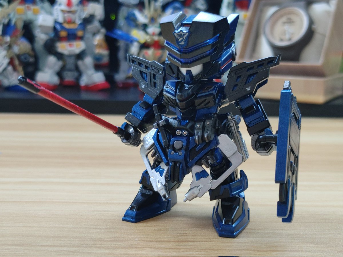 「ヴェルデバスター隊員」 完成!😆 メタリックブルーとメタリックブラックで塗装! 筆塗り塗装楽しい😊 #ガンプラ #ガンプラはどんな自由な発想で作ってもいいんだ #ガンプラの画像貼るとRTされると聞いて #ガンプラは自由だ