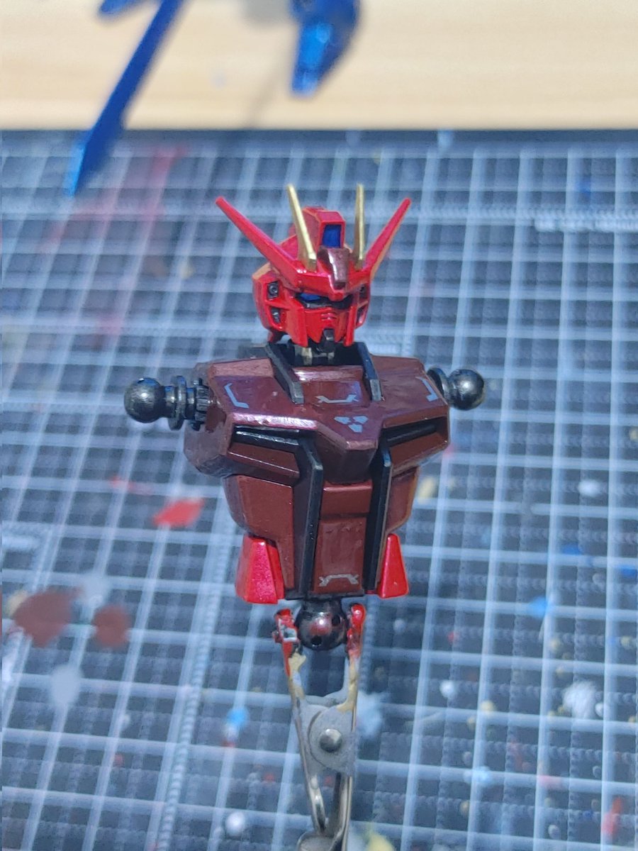 「赤い…ストライクガンダム」完成! 今回の筆塗りは難しいかったです😅 #ガンプラ #ガンプラの画像貼るとRTされると聞いて #ガンプラはどんな自由な発想で作ってもいいんだ #ガンプラ好きな人と繋がりたい