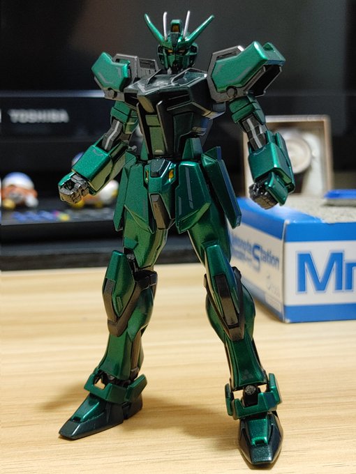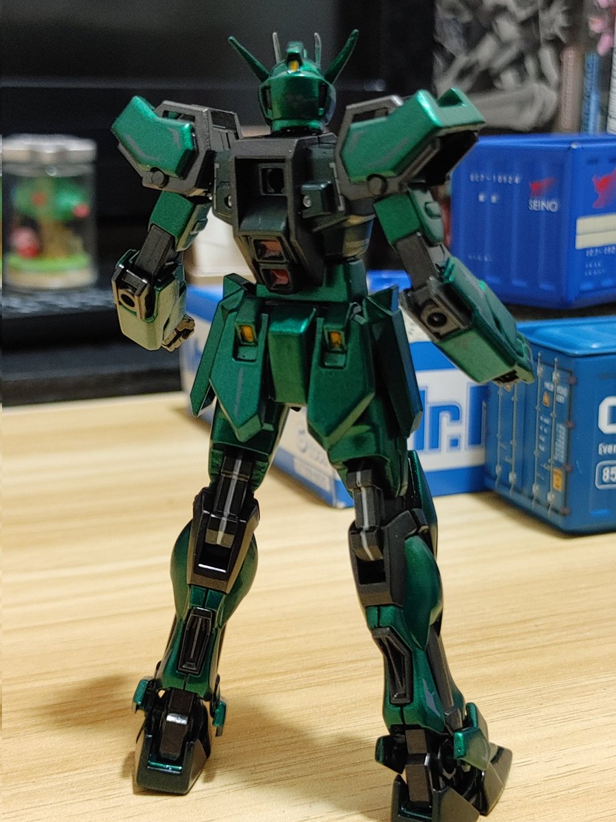 「緑の…ストライクガンダム!」 今回はメタリックグリーンで、筆塗り全塗装してみました✨ 今回は綺麗に塗れた😊 #ガンプラ #ガンプラの画像貼るとRTされると聞いて #ガンプラ好きな人たちと繋がりたい