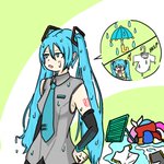 #土日はフォロワーさんが増える #イラスト #絵描きさんと繋がりたい #初音ミク 初音ミクです。 雨の日の災難・・・