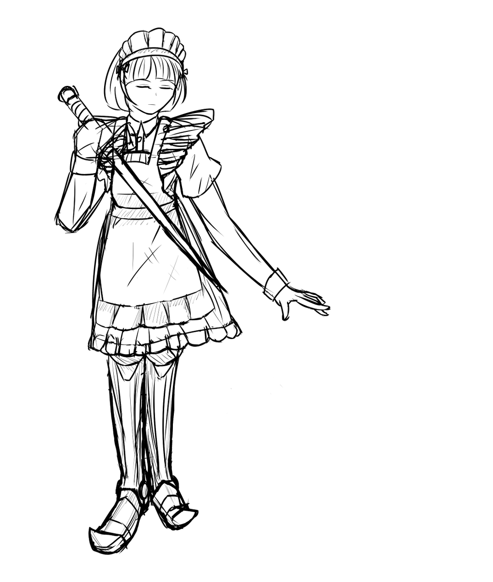 メイドドレス+グリーヴ装備メイドさん これはこれでいいよねというらくがき